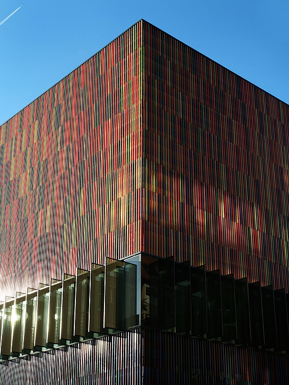 Videoprojektion auf das Sanaa-Gebäude bei der Abschlussveranstaltung